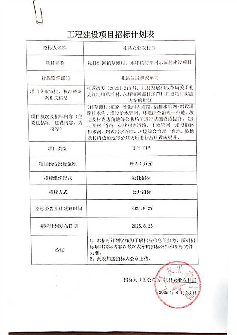 附件:招標(biāo)計劃-禮縣紅河鎮(zhèn)草灘村、永坪鎮(zhèn)河那村示范村建設(shè)項目.pdf
