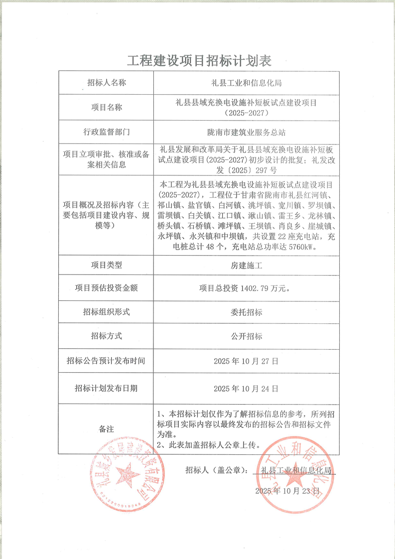 禮縣縣域充換電設(shè)施補(bǔ)短板試點建設(shè)項目(2025-2027)