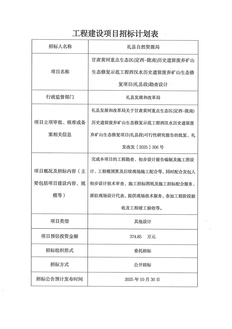 甘肅黃河重點生態(tài)區(qū)(定西-隴南)歷史遺留廢棄礦山生態(tài)修復示范工程西漢水歷史遺留廢棄礦山生態(tài)修復項目(禮縣段)勘查設計