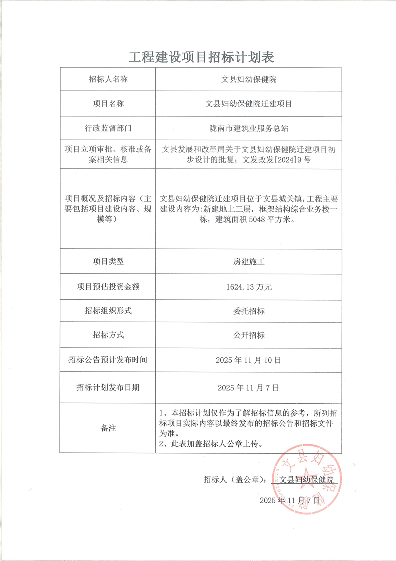 附件:招標(biāo)計劃表—文縣婦幼保健院遷建項目.pdf