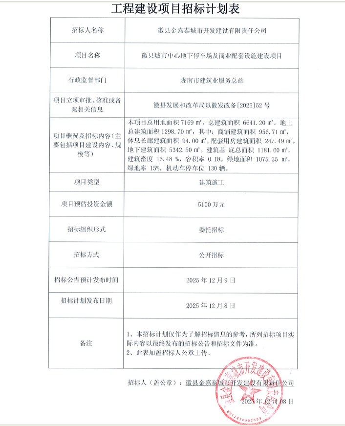 徽縣城市中心地下停車場及商業(yè)配套設施建設項目