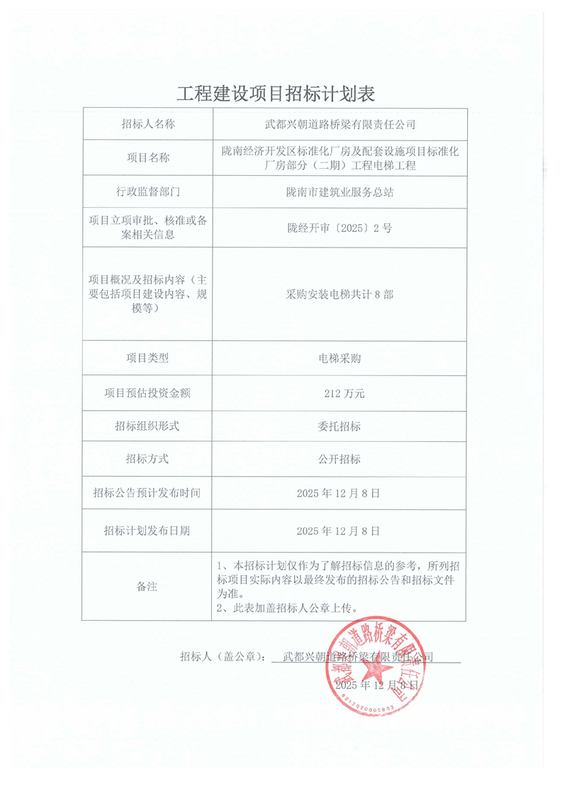 隴南經(jīng)濟(jì)開發(fā)區(qū)標(biāo)準(zhǔn)化廠房及配套設(shè)施項(xiàng)目標(biāo)準(zhǔn)化廠房部分(二期)工程電梯工程