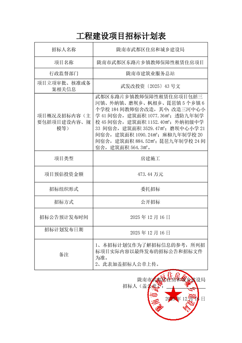隴南市武都區(qū)東路片鄉(xiāng)鎮(zhèn)教師保障性租賃住房項目
