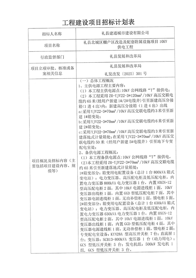 禮縣北城區(qū)棚戶區(qū)改造及配套附屬設(shè)施項目10KV供電工程