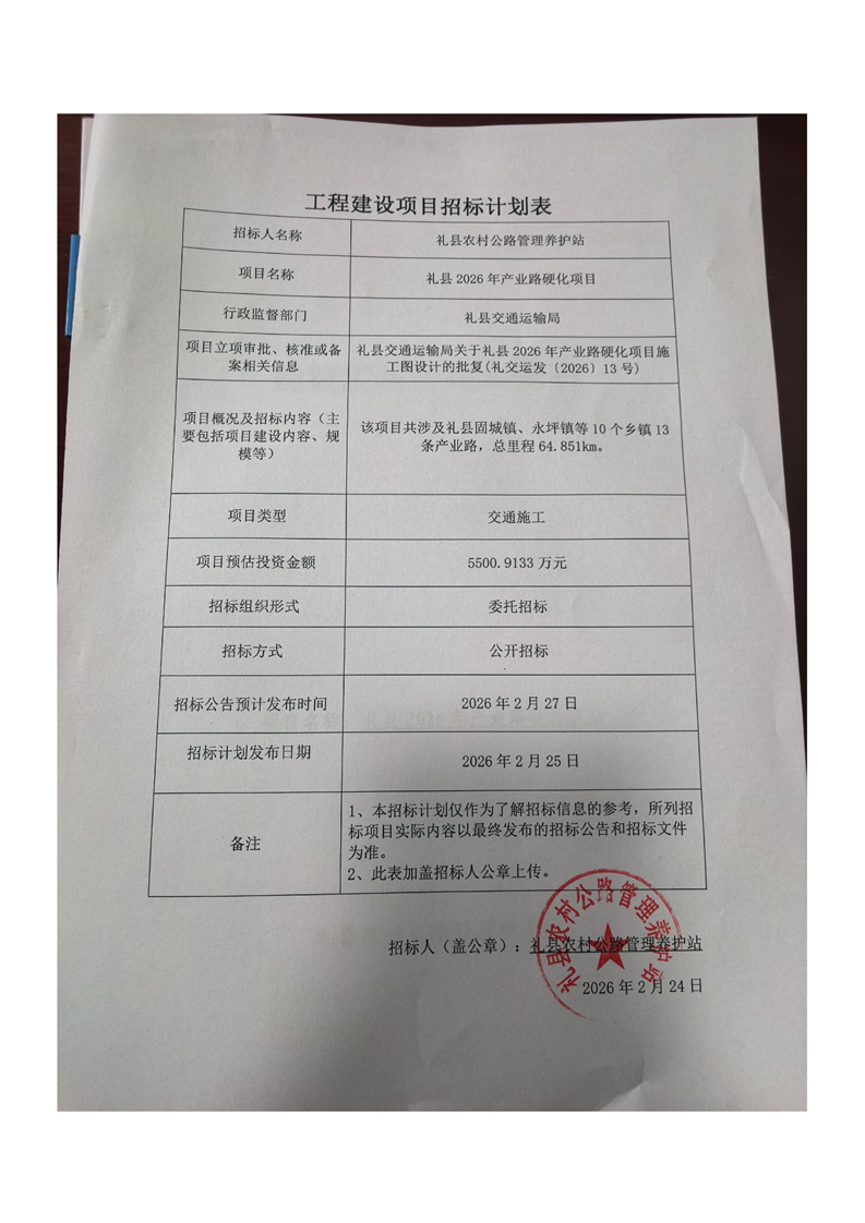 禮縣2026年產(chǎn)業(yè)路硬化項(xiàng)目