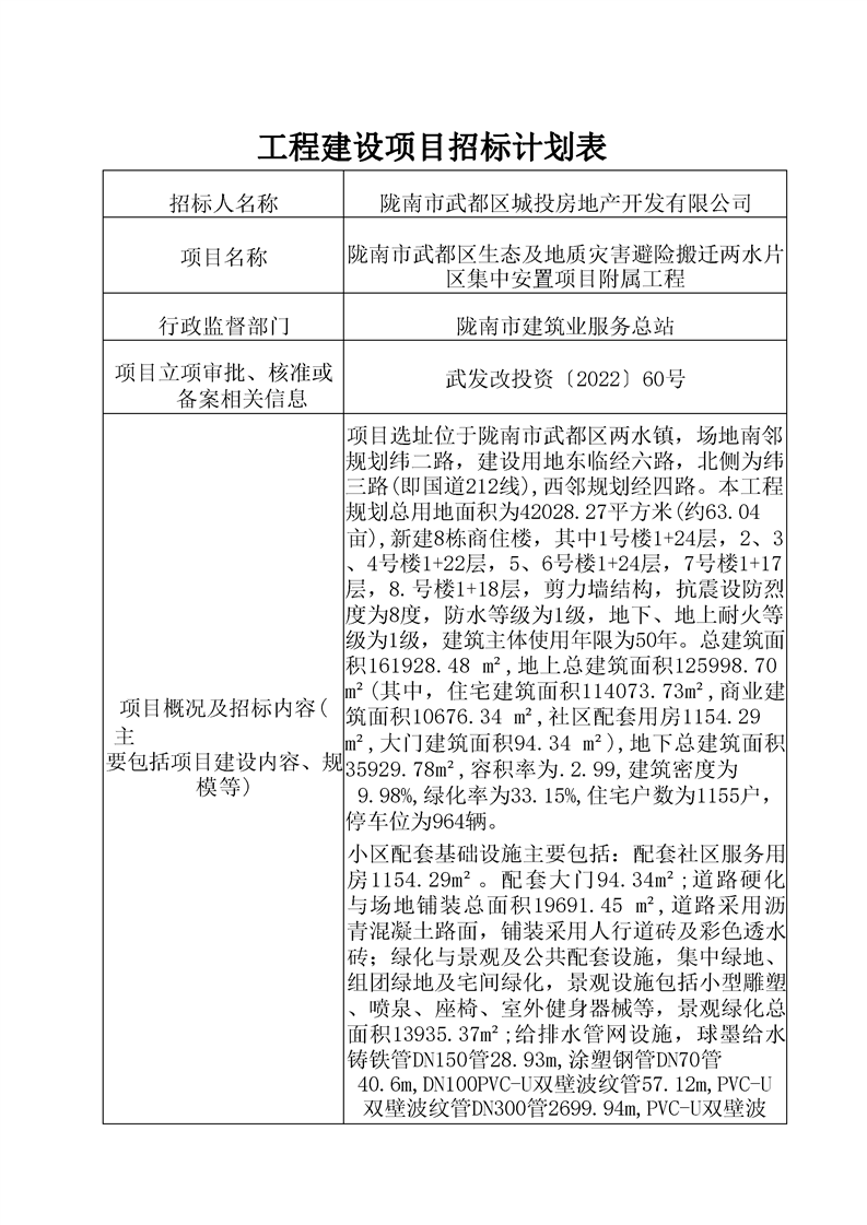 隴南市武都區(qū)生態(tài)及地質(zhì)災(zāi)害避險(xiǎn)搬遷兩水片區(qū)集中安置項(xiàng)目附屬工程