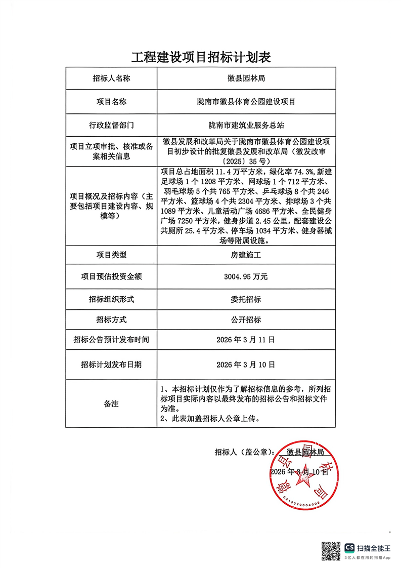 隴南市徽縣體育公園建設項目