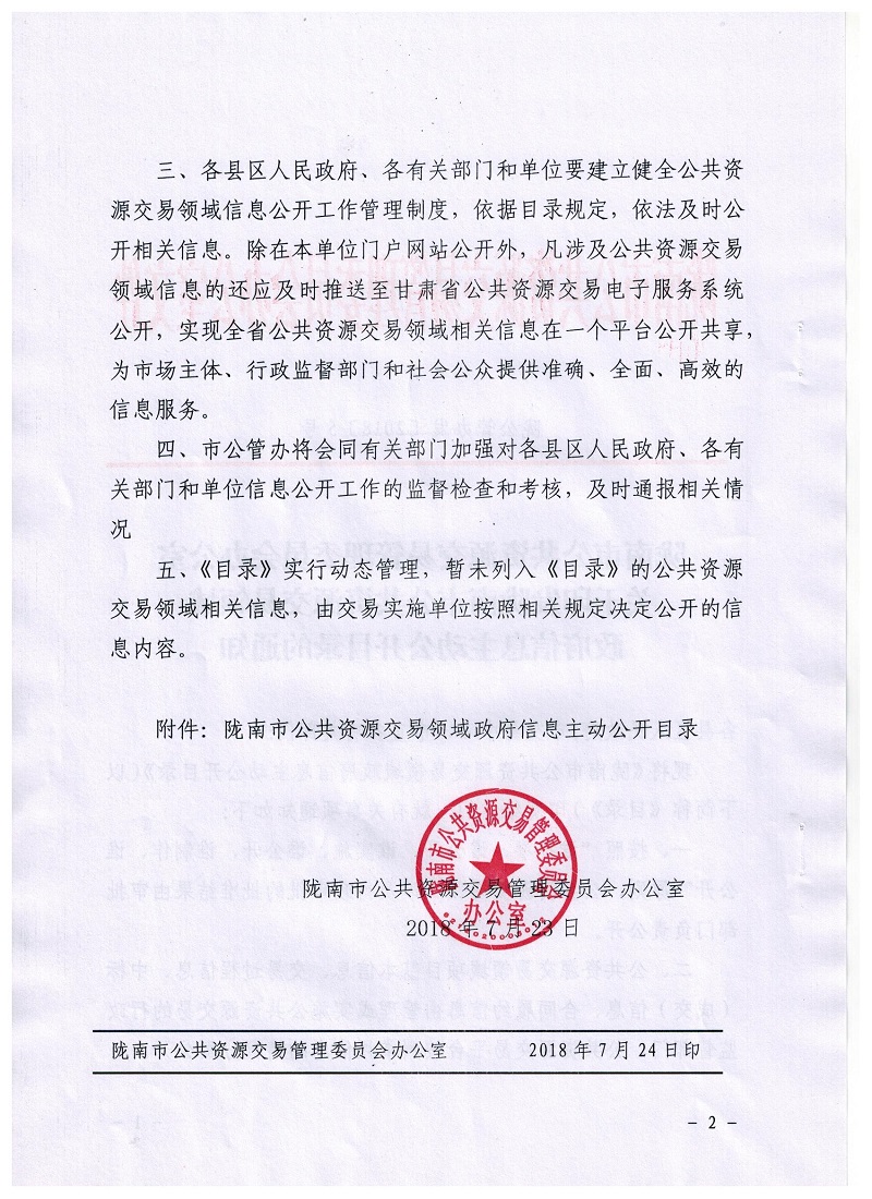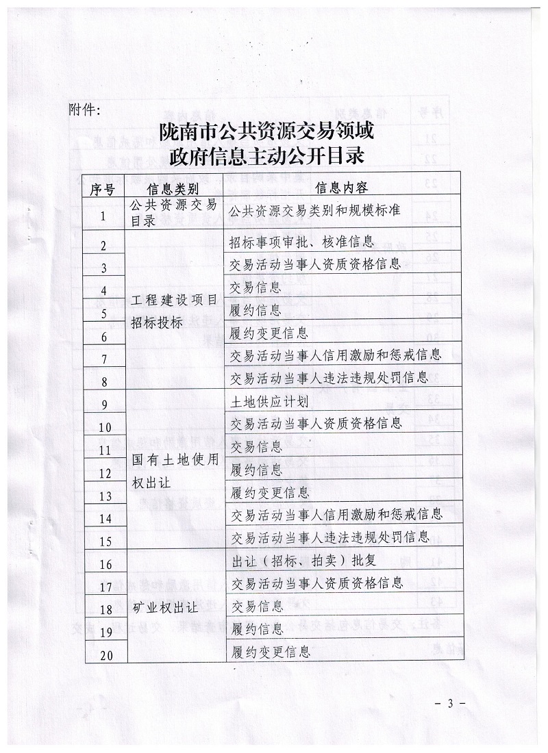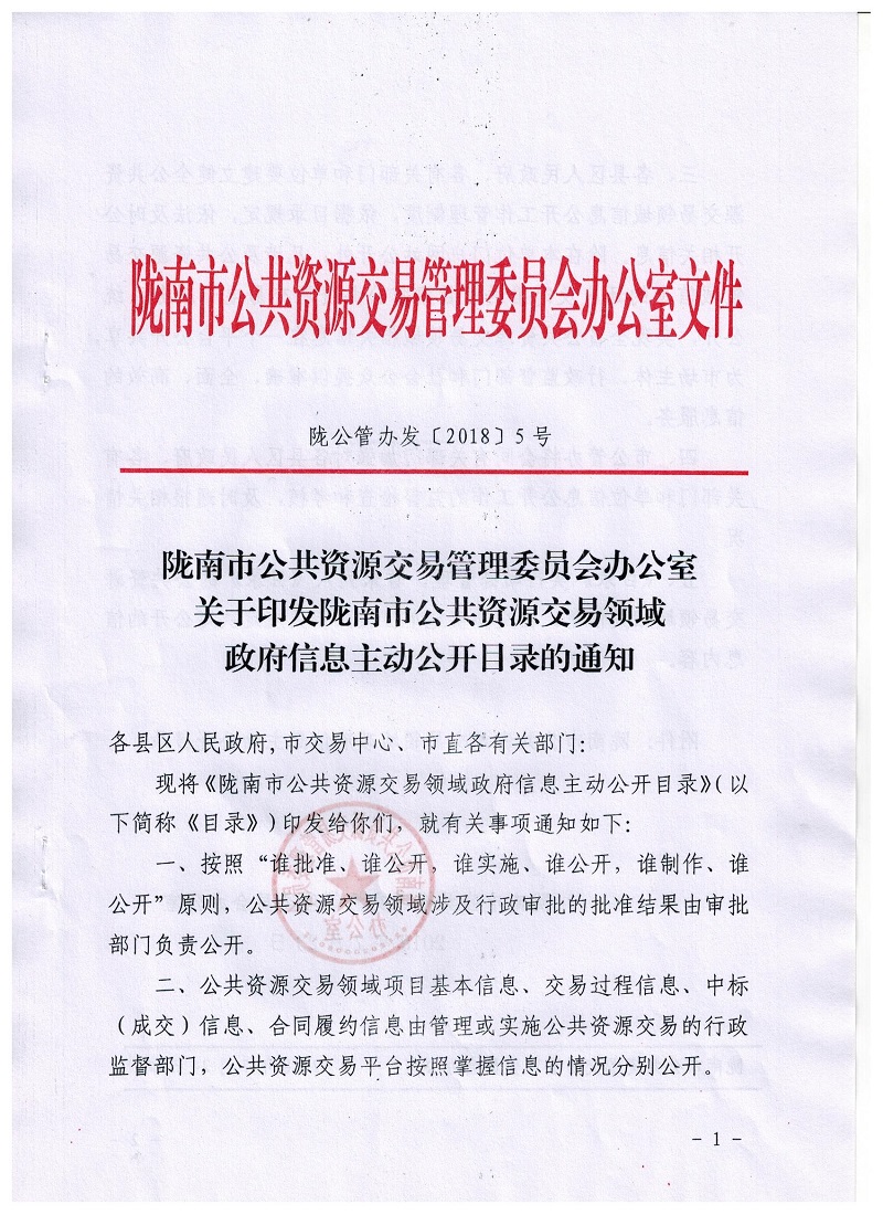 隴南市公共資源交易管理委員會(huì)辦公室關(guān)于印發(fā)隴南市公共資源交易領(lǐng)域政府信息主動(dòng)公開(kāi)目錄的通知